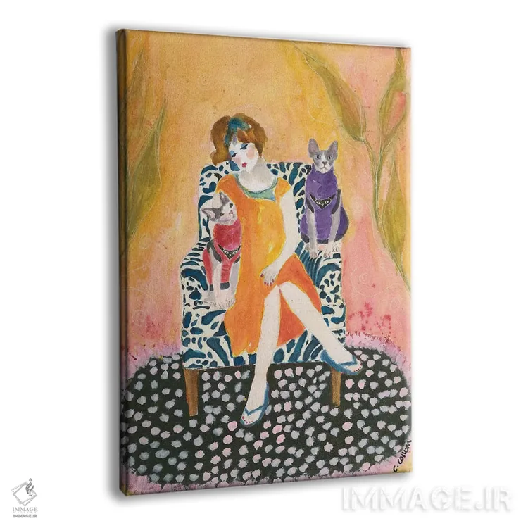 تابلو بانوی کاوالیِر روی صندلی آبی (نوع سگ)