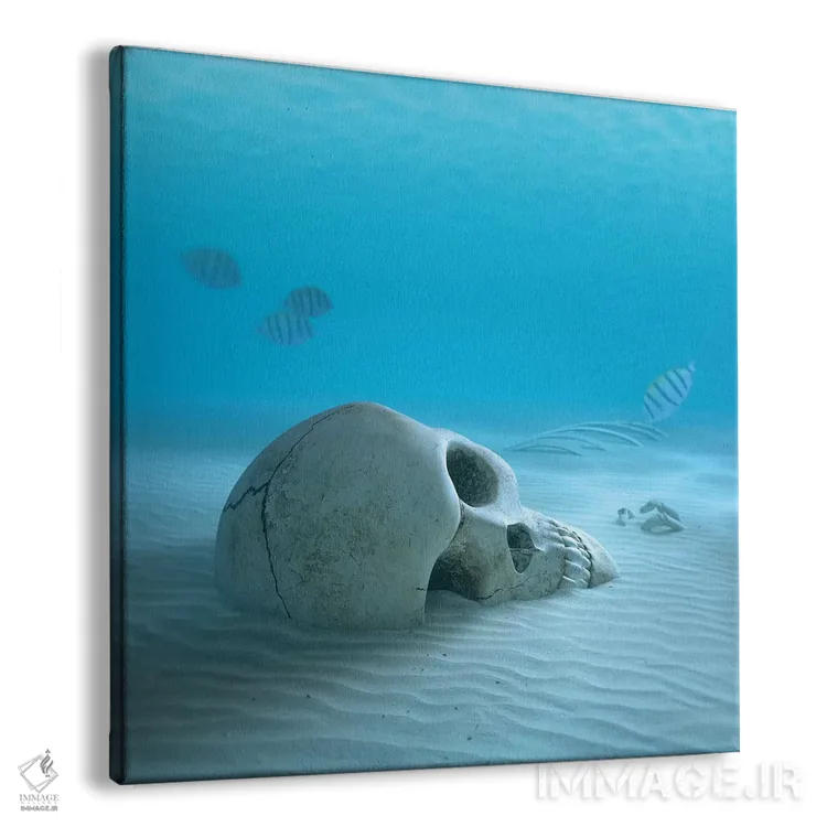 تابلو دکوراتیو جمجمه در کف شنی اقیانوس همراه با ماهی های کوچک که استخوا… اثر یوهان سوانپوئل