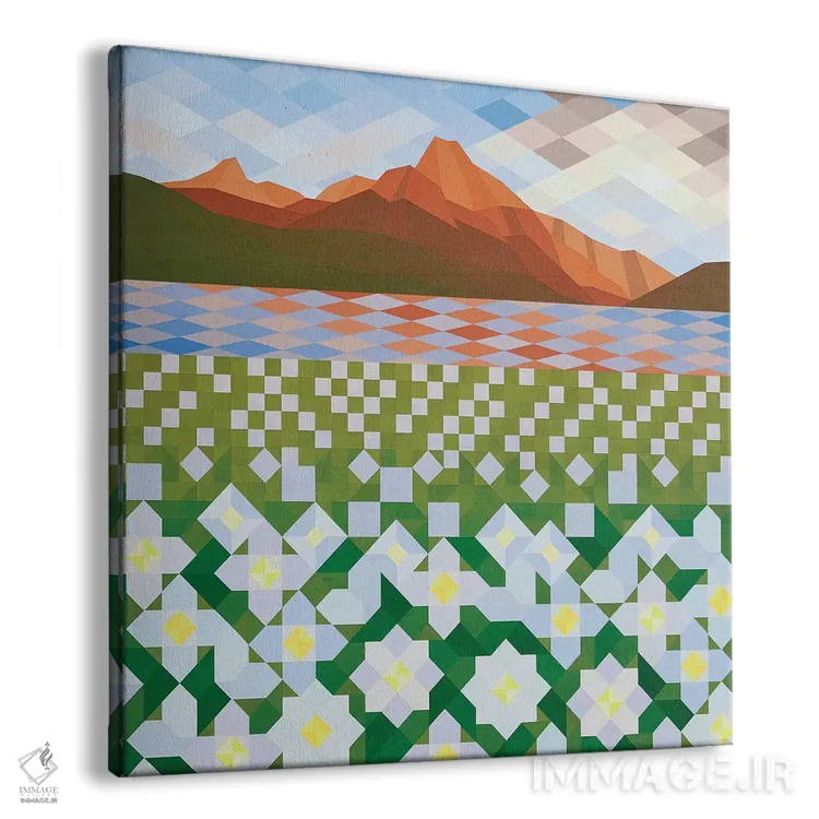 تابلو مینیمال کوه بر فراز سبزه زار اثر جون یونگجین