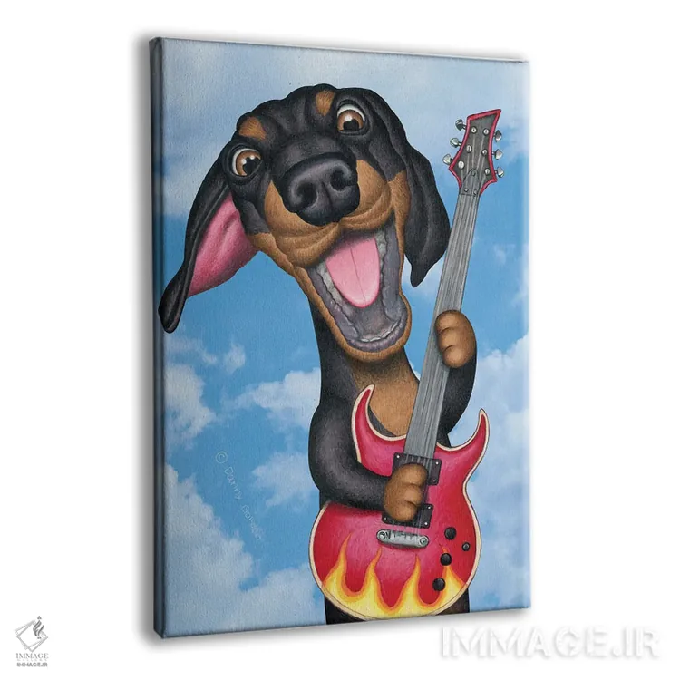 تابلو دکوراتیو داشهوند مشکی نوازنده گیتار با پس زمینه آسمان اثر دنی گوردون