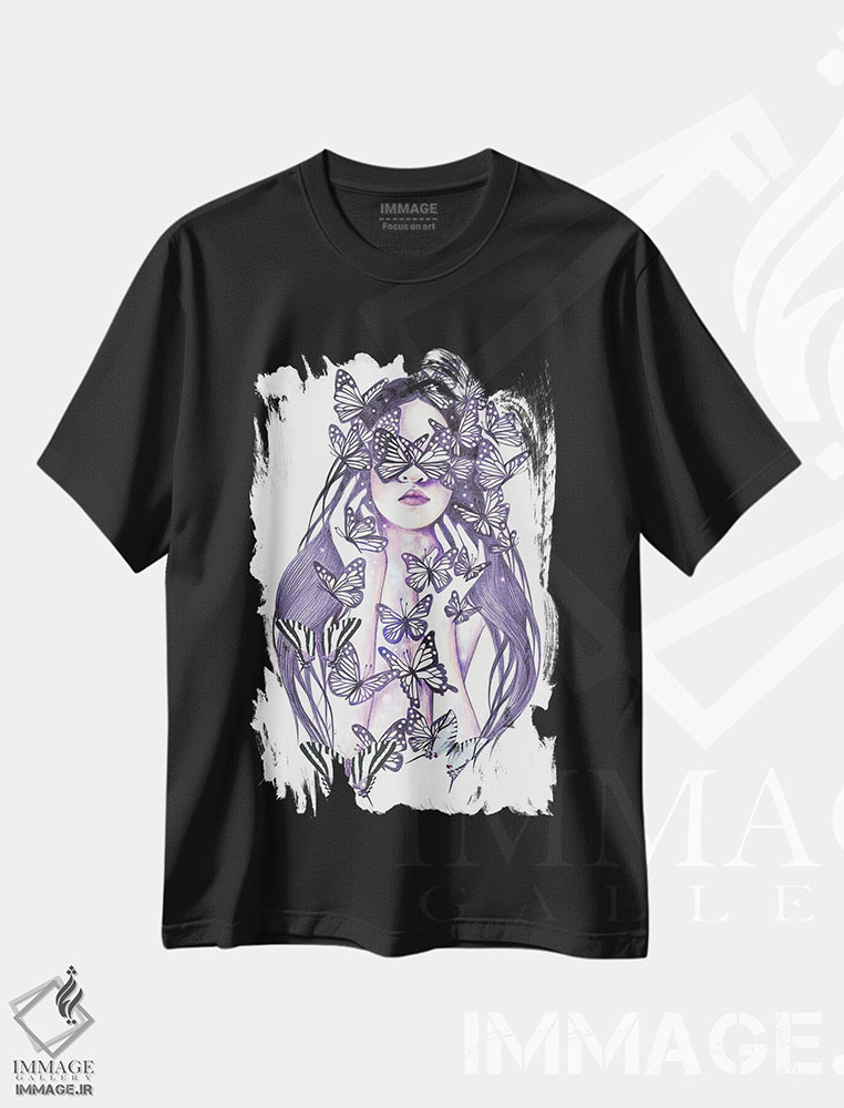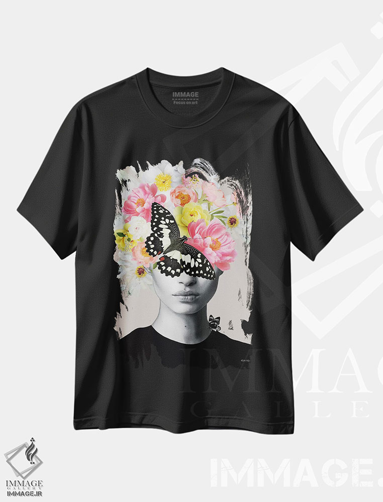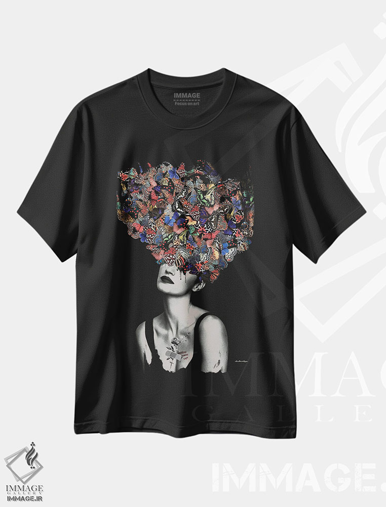 تیشرت طرح دار بانوی پروانه ای، تزئینی اثر آندریا هرنیاک | فروشگاه ایماژ تیشرت طرح دار بانوی پروانه ای اثر آندریا هرنیاک