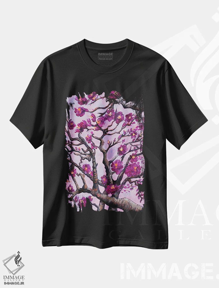 تیشرت طرح دار زمان شکوفه، دست نقاشی و طراحی دستی اثر آندریا هرنیاک | فروشگاه ایماژ