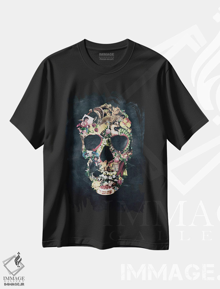 تیشرت طرح دار جمجمه پرگل، دکوراسیون جایگزین اثر علی گولچ | فروشگاه ایماژ تیشرت طرح دار جمجمه پرگل اثر علی گولچ