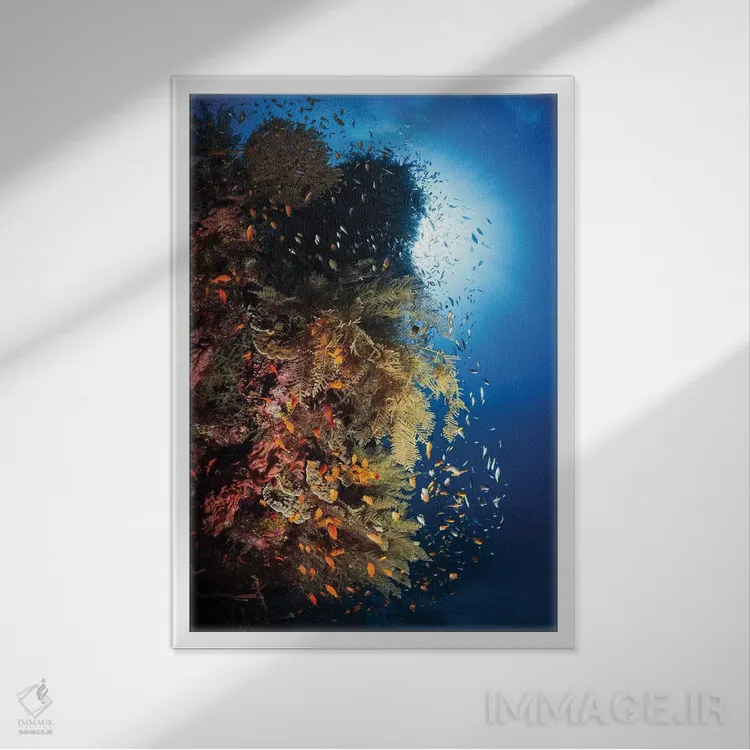 براساس پالت ترکیبی اثر، قاب تیک گرم (چوبی) پیشنهاد اول است و مشکی مات (فریم متوسط) مکمل. برای سفارشهای پروژهای با ابعاد و قابهای اختصاصی با ایماژ در تماس باشید.