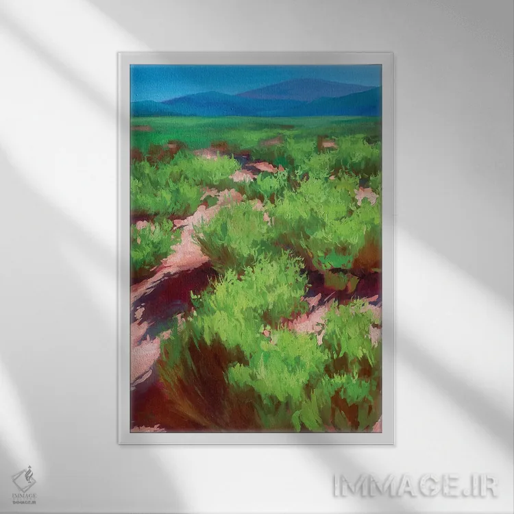 براساس پالت ترکیبی اثر، قاب تیک گرم (چوبی) پیشنهاد اول است و مشکی مات (فریم متوسط) مکمل. برای سفارشهای پروژهای با ابعاد و قابهای اختصاصی با ایماژ در تماس باشید.