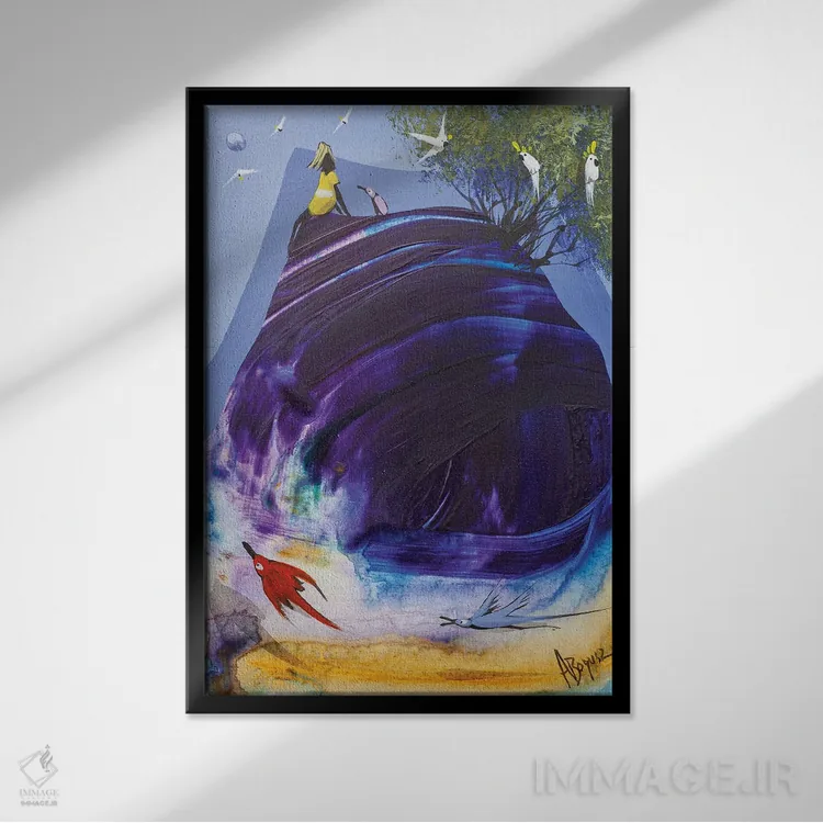 براساس پالت ترکیبی اثر، قاب تیک گرم (چوبی) پیشنهاد اول است و مشکی مات (فریم متوسط) مکمل. برای سفارشهای پروژهای با ابعاد و قابهای اختصاصی با ایماژ در تماس باشید.