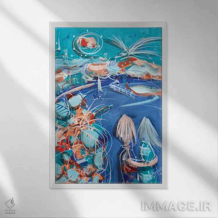 براساس پالت ترکیبی اثر، قاب تیک گرم (چوبی) پیشنهاد اول است و مشکی مات (فریم متوسط) مکمل. برای سفارشهای پروژهای با ابعاد و قابهای اختصاصی با ایماژ در تماس باشید.