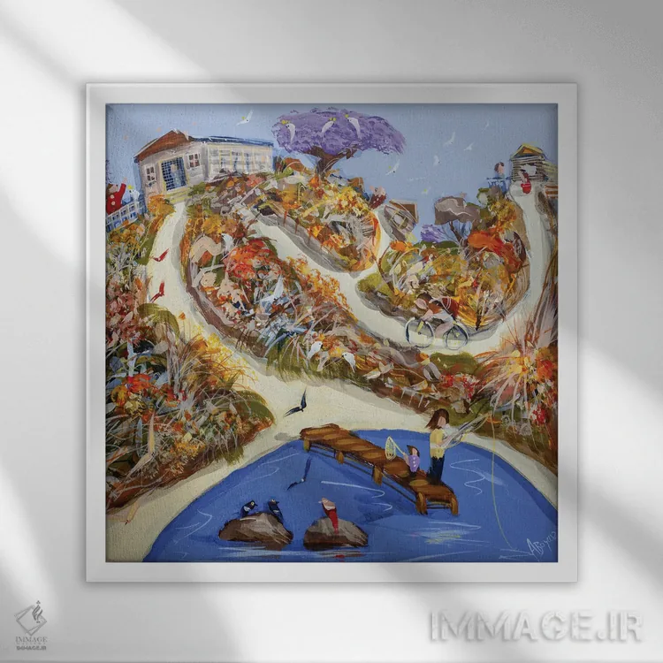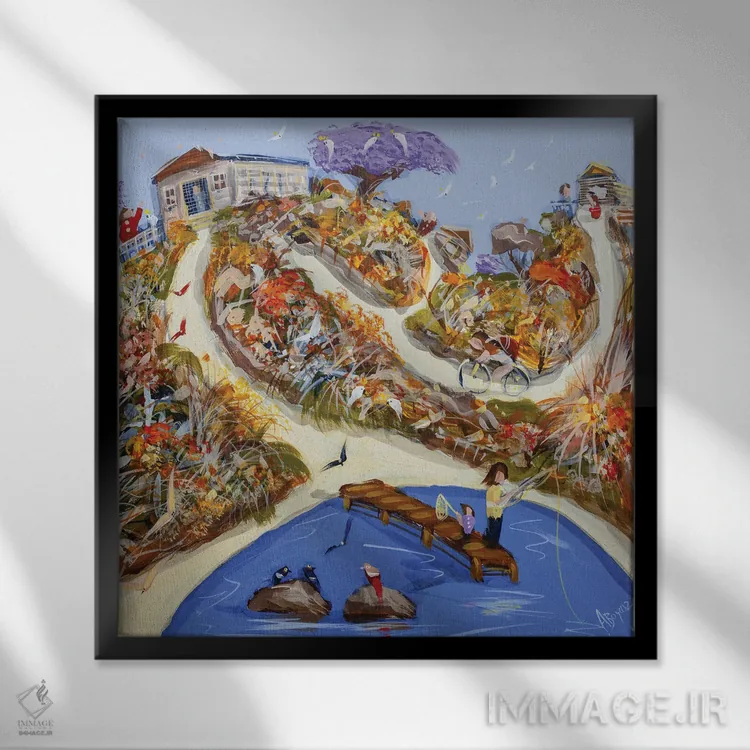 براساس پالت ترکیبی اثر، قاب تیک گرم (چوبی) پیشنهاد اول است و مشکی مات (فریم متوسط) مکمل. برای سفارشهای پروژهای با ابعاد و قابهای اختصاصی با ایماژ در تماس باشید.