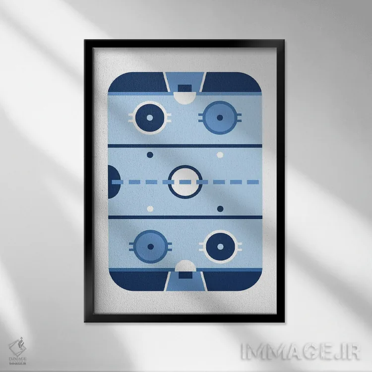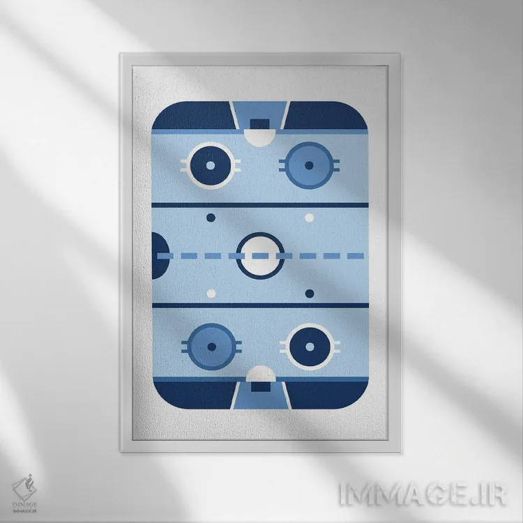 تابلو زمین هاکی آبی‌رنگ اثر بث بوردلون - نمای قاب‌دار سفید