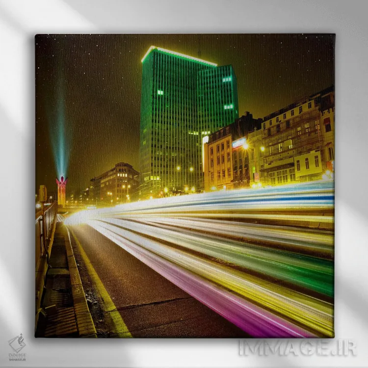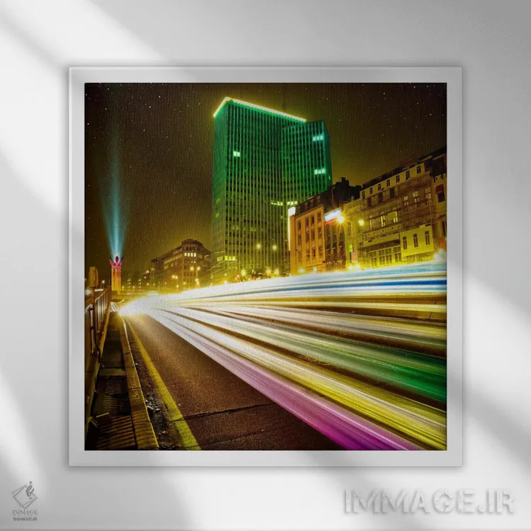 «بروکسل در شب (بلژیک)» اثرِ «بن هاین (هنرمند بلژیکی)» با تاکید بر عمق میدان و حسِ فاصلهها، فضای دیوار را بزرگتر و بازتر نشان میدهد.