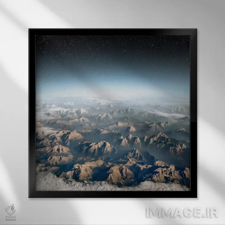 براساس پالت سرد اثر، قاب سفید مات (فریم باریک) پیشنهاد اول است و نقرهای برسخورده (متالیک) مکمل. برای سفارشهای پروژهای با ابعاد و قابهای اختصاصی با ایماژ در تماس باشید.