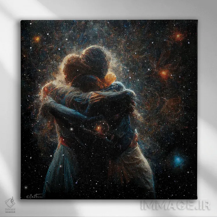 تابلو ما دو نفر در جهان اثر بن هاین (هنرمند بلژیکی) - نمای قاب‌دار مشکی