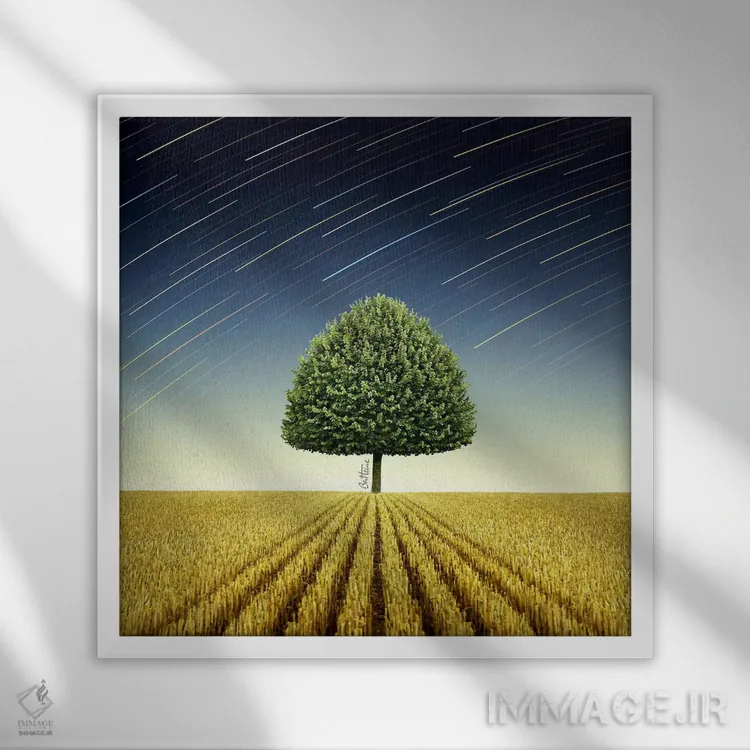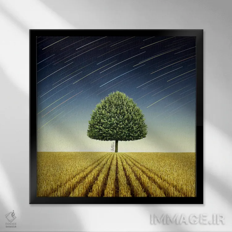 براساس پالت ترکیبی اثر، قاب تیک گرم (چوبی) پیشنهاد اول است و مشکی مات (فریم متوسط) مکمل. برای سفارشهای پروژهای با ابعاد و قابهای اختصاصی با ایماژ در تماس باشید.
