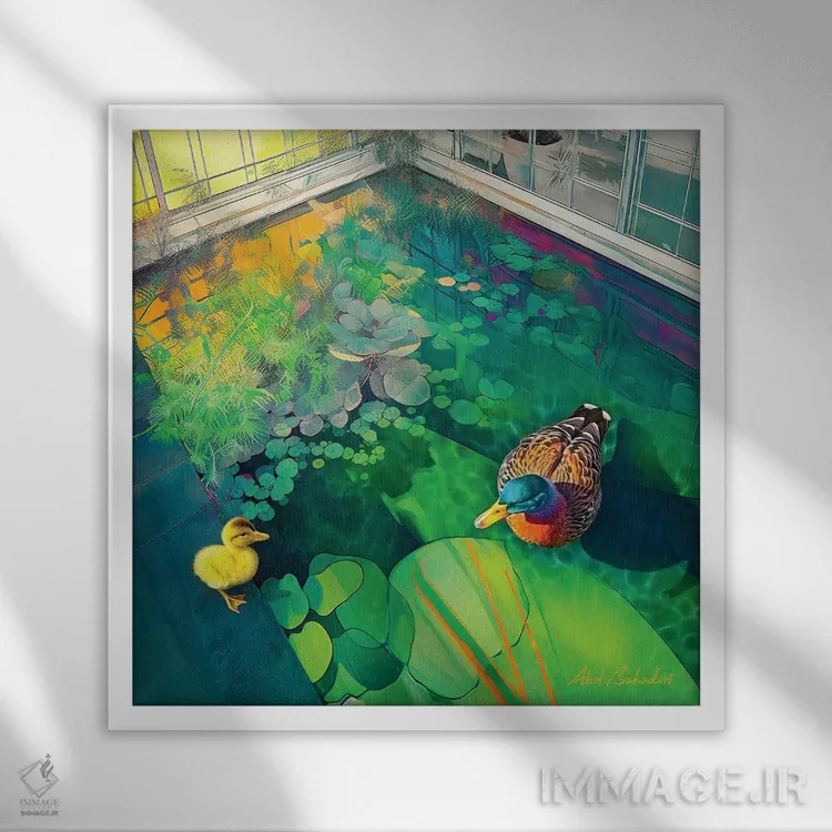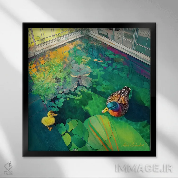 براساس پالت ترکیبی اثر، قاب تیک گرم (چوبی) پیشنهاد اول است و مشکی مات (فریم متوسط) مکمل. برای سفارشهای پروژهای با ابعاد و قابهای اختصاصی با ایماژ در تماس باشید.