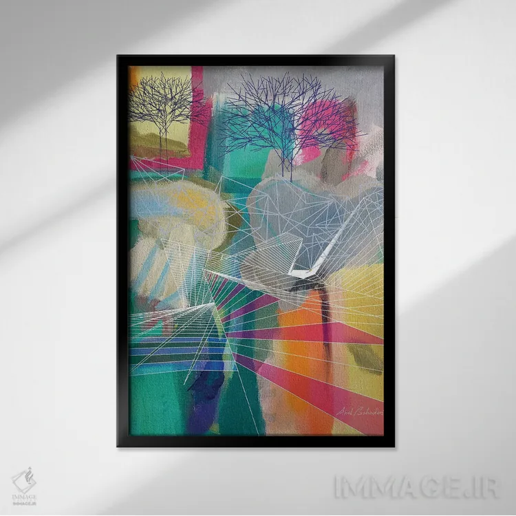 براساس پالت ترکیبی اثر، قاب تیک گرم (چوبی) پیشنهاد اول است و مشکی مات (فریم متوسط) مکمل. برای سفارشهای پروژهای با ابعاد و قابهای اختصاصی با ایماژ در تماس باشید.