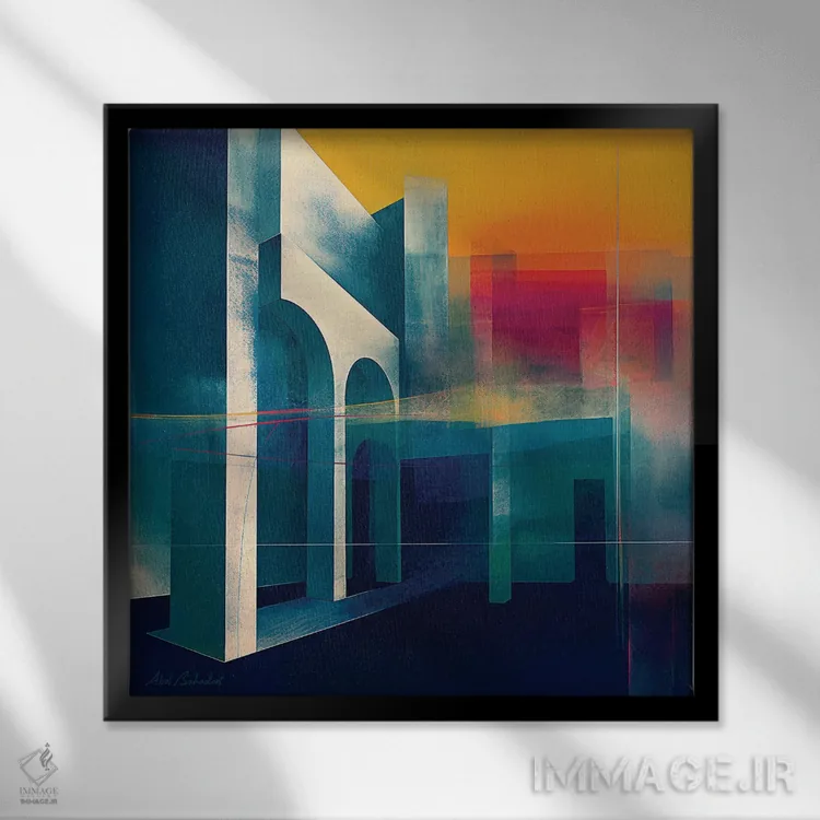 براساس پالت ترکیبی اثر، قاب تیک گرم (چوبی) پیشنهاد اول است و مشکی مات (فریم متوسط) مکمل. برای سفارشهای پروژهای با ابعاد و قابهای اختصاصی با ایماژ در تماس باشید.