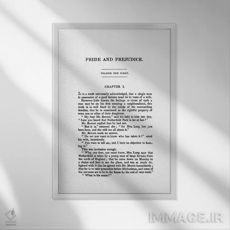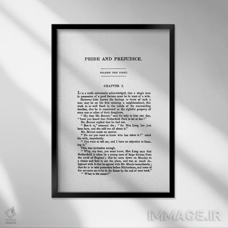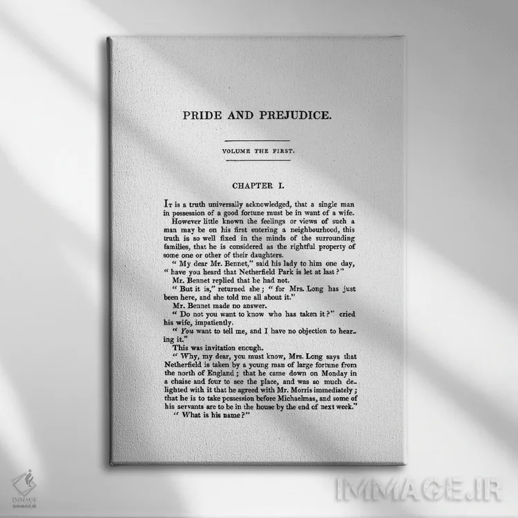تابلو صفحه کتاب غرور و تعصب اثر جین آستن اثر بیبلیوتوگرافی
