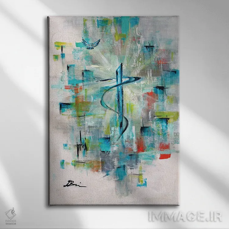 «انتزاعی میانهقرن؛ باور به صلیب مقدس مسیحی» اثرِ «آنجلا بیسون» با اجرای پرداختِ هنری، به دیوار شخصیت میدهد؛ مناسبِ فضای کار، اتاق نوجوان یا گوشهی مطالعه.