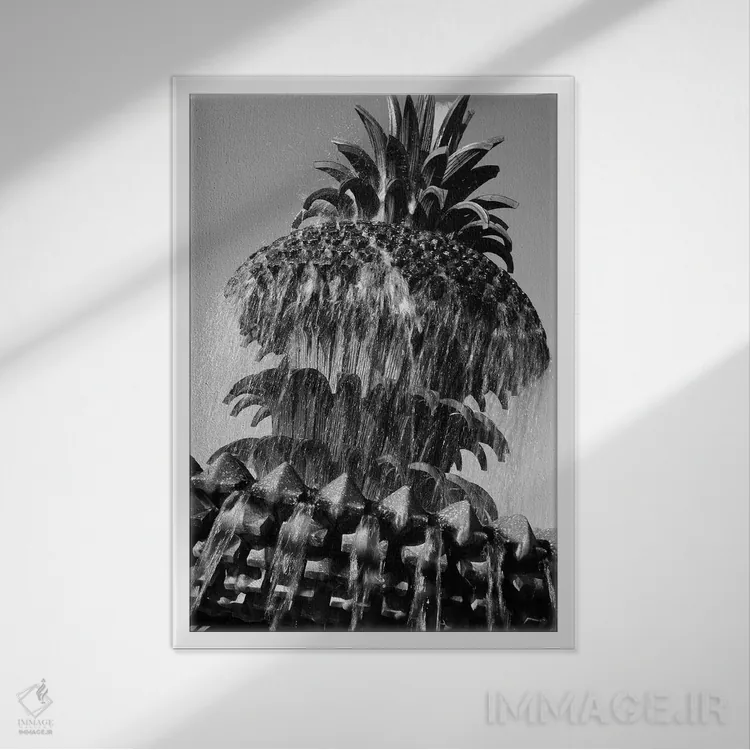 «فوارهٔ آناناس» اثرِ «بنجامین پاجت» در فضای عکاسی سیاهوسفید، روی نور و کنتراست تکیه میکند؛ موضوعِ این اثر برای دکورهای مینیمال عالی است.