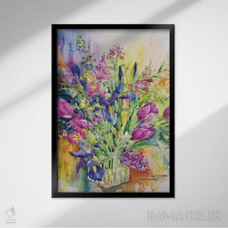اگر دوست دارید دیوار روشنتر و آرامتر دیده شود، «زنبق آبی و همچنین لالهها» اثرِ «آنلاین بوکنکمپ» در کنار چوب و پارچههای روشن، عالی مینشیند، برای اتاق خواب گزینهٔ مناسبیست. برای دیوار گالری هم ترکیبپذیر و خوشنشین است.