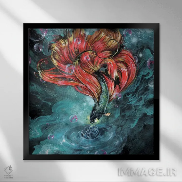 براساس پالت ترکیبی اثر، قاب تیک گرم (چوبی) پیشنهاد اول است و مشکی مات (فریم متوسط) مکمل. برای سفارشهای پروژهای با ابعاد و قابهای اختصاصی با ایماژ در تماس باشید.