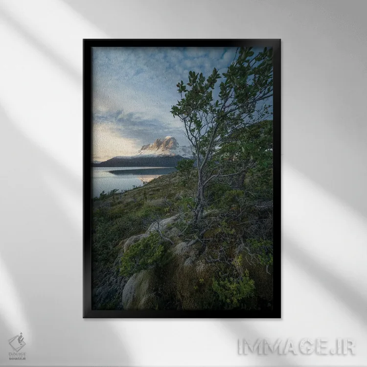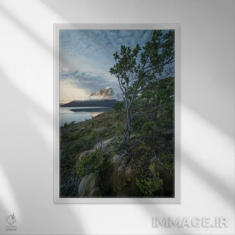 در نگاه اول، «غروب در آبدرههای پاتاگونیا IV» اثرِ «استیو برکلی» دیوار را از تزئین به «حضور» تبدیل میکند؛ برای کافهها و فضاهای عمومی کوچک پیشنهاد میشود. با نور گرم یا سرد، خوانایی و وقارش را حفظ میکند.