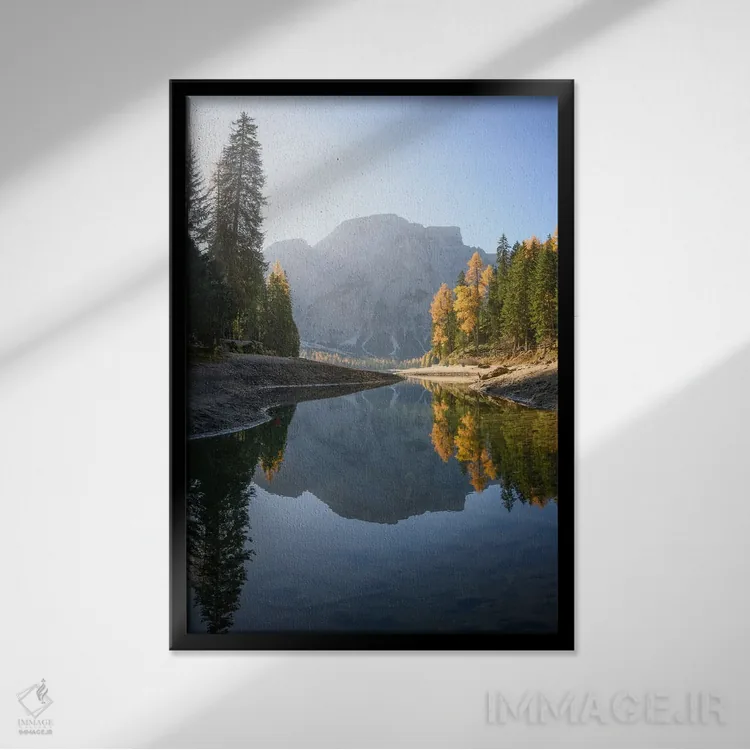 اگر میخواهید دیوار از «پسزمینه» بیرون بیاید، «دریاچهٔ براایس (ایتالیا)» اثرِ «استیو برکلی» جلوهٔ اتاق را یک پله حرفهایتر میکند؛ برای کافهها و فضاهای عمومی کوچک پیشنهاد میشود. حضورش روی دیوار «مرتب» است؛ نه پر سر و صدا، نه بیاثر.