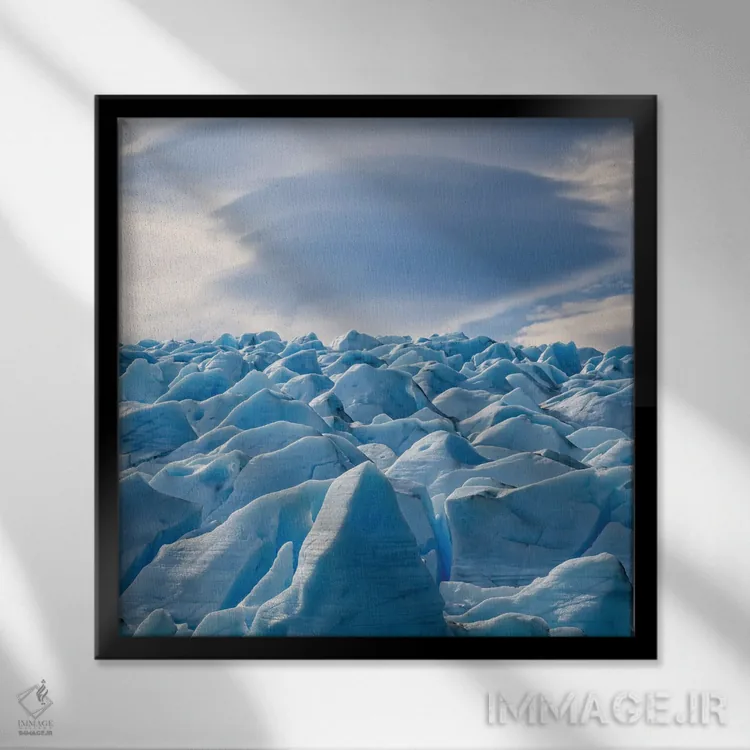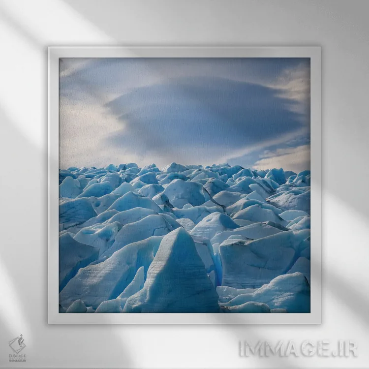 براساس پالت سرد اثر، قاب سفید مات (فریم باریک) پیشنهاد اول است و نقرهای برسخورده (متالیک) مکمل. برای سفارشهای پروژهای با ابعاد و قابهای اختصاصی با ایماژ در تماس باشید.