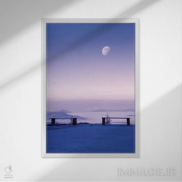 براساس پالت سرد اثر، قاب سفید مات (فریم باریک) پیشنهاد اول است و نقرهای برسخورده (متالیک) مکمل. برای سفارشهای پروژهای با ابعاد و قابهای اختصاصی با ایماژ در تماس باشید.