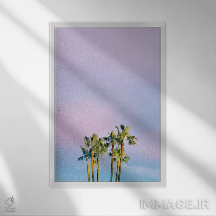 «رویای تابستانی با نخلها» اثرِ «بلی» مثل یک نفس تازه است؛ برای دیوارهای ساده، یک لطافتِ دقیق میسازد؛ برای نشیمنهای روشن انتخابی خوشسلیقه است. فضا را شلوغ نمیکند؛ فقط لطیفترش میکند.