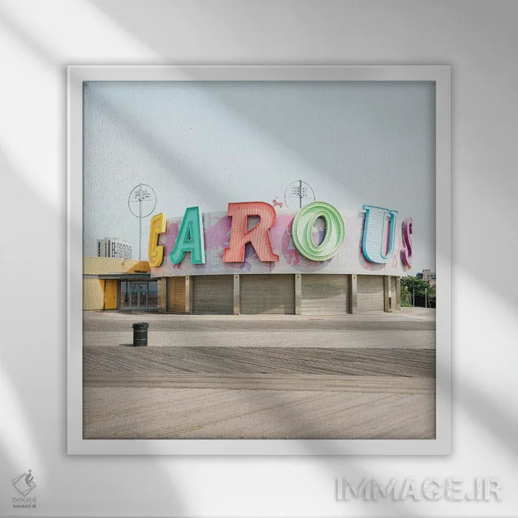 «Coney Island III، چرخوفلک، جزیره کانی III» اثرِ «جان بیلوس» میتواند در کنار بتن، فلز یا چوب عالی بنشیند؛ برای راهروهای شیک پیشنهاد شود. با قاب مشکی مات، جلوهٔ تمیزتری پیدا میکند.