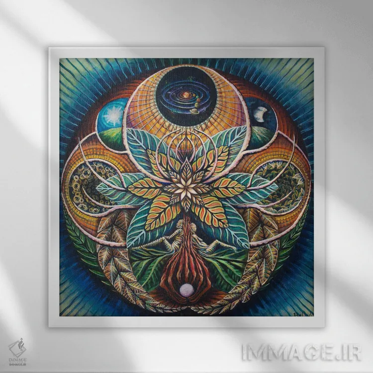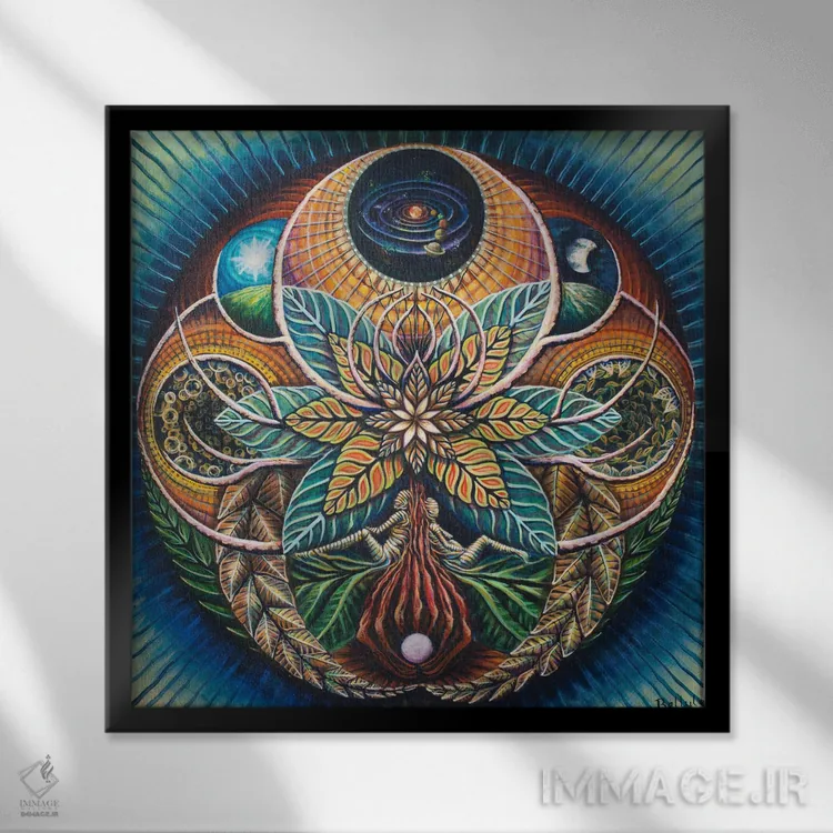 براساس پالت ترکیبی اثر، قاب تیک گرم (چوبی) پیشنهاد اول است و مشکی مات (فریم متوسط) مکمل. برای سفارشهای پروژهای با ابعاد و قابهای اختصاصی با ایماژ در تماس باشید.
