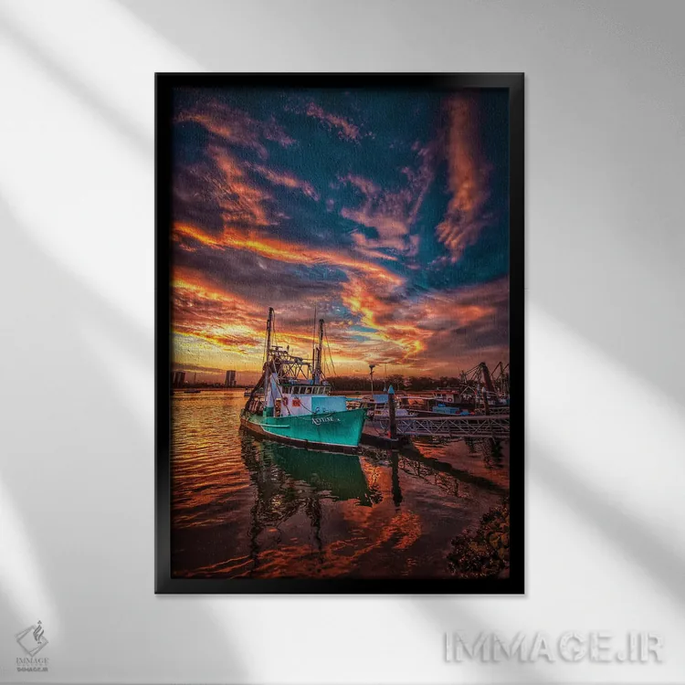 تابلو قایق ماهیگیری بزرگ (ترالر) اثر بن مولدر - نمای قاب‌دار مشکی
