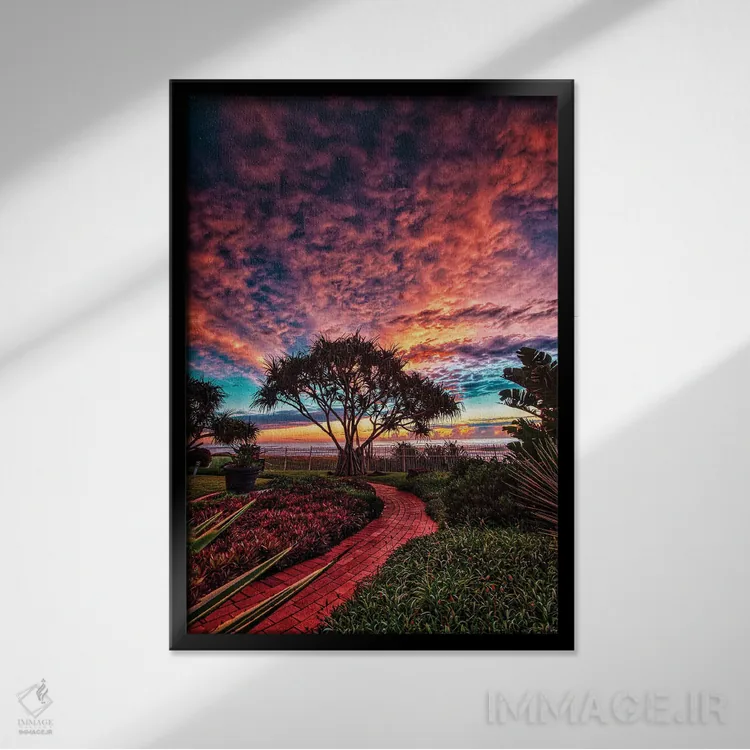 براساس پالت ترکیبی اثر، قاب تیک گرم (چوبی) پیشنهاد اول است و مشکی مات (فریم متوسط) مکمل. برای سفارشهای پروژهای با ابعاد و قابهای اختصاصی با ایماژ در تماس باشید.