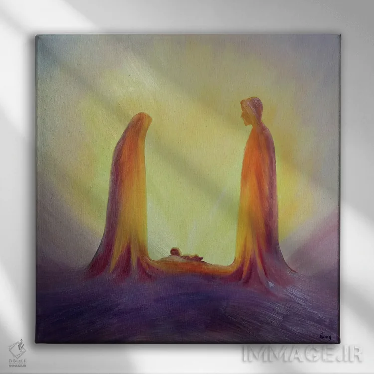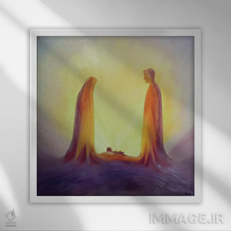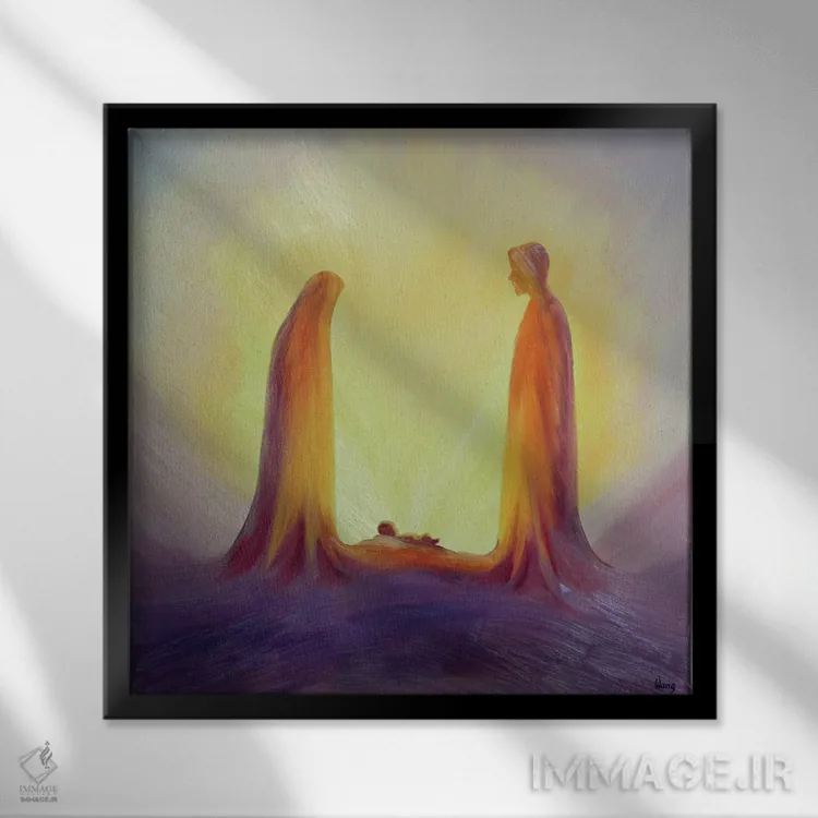 تابلو 1995,مریم و یوسف با ایمان به کودک عیسی در تولدش مینگرند، ۱۹۹۵ اثر الیزابت وانگ