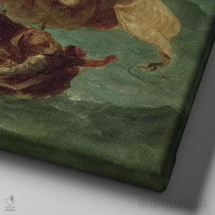 این اثرِ «فرباوراند ویکتور اوژن دلاکروا (نقاش فرانسوی)» در لحن کلاسیک، وقار بصری دارد؛ موضوعِ این اثر هم برای دیوارِ شاخص و نورپردازی گرم بسیار مناسب است.
