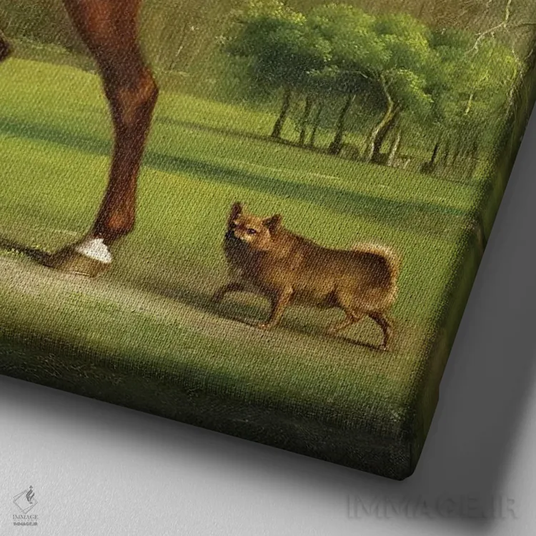 اگر میخواهید دیوار کمی سرزندگیِ محترمانه داشته باشد، «c.1760، کنتس کانینگزبی با لباس شکار چارلتون، حدود ۱۷۶۰» اثرِ «جورج استابز (نقاش حیوانات انگلیسی)» به دیوار، انرژیِ نرم و زنده میدهد، برای هدیهدادن به دوستداران حیوانات گزینهٔ مناسبیست. با قاب چوبی یا مشکی، حس مرتبتری پیدا میکند.