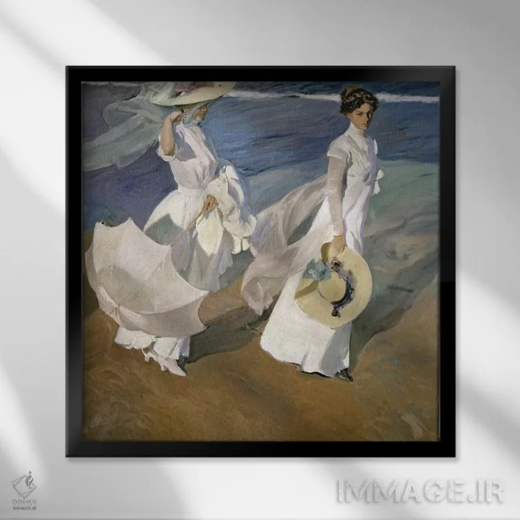 اگر به قابهای رسمی و گالریپسند علاقه داری، «1909، قدمزدن در کنار ساحل، ۱۹۰۹» اثرِ «خواکین سورویا باستیدا (نقاش اسپانیایی)» با موضوعِ این اثر در فضای فاخر کلاسیک گزینهی مطمئنی است.