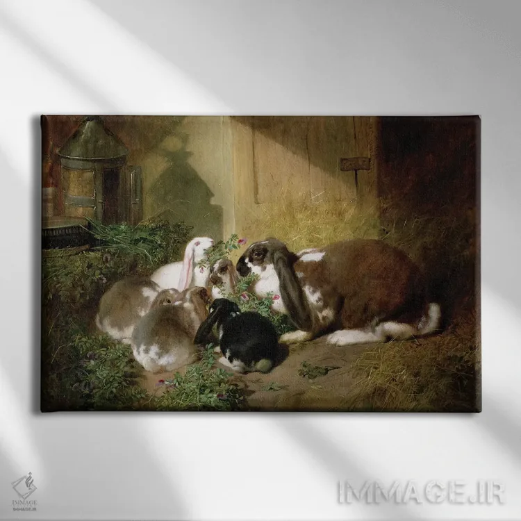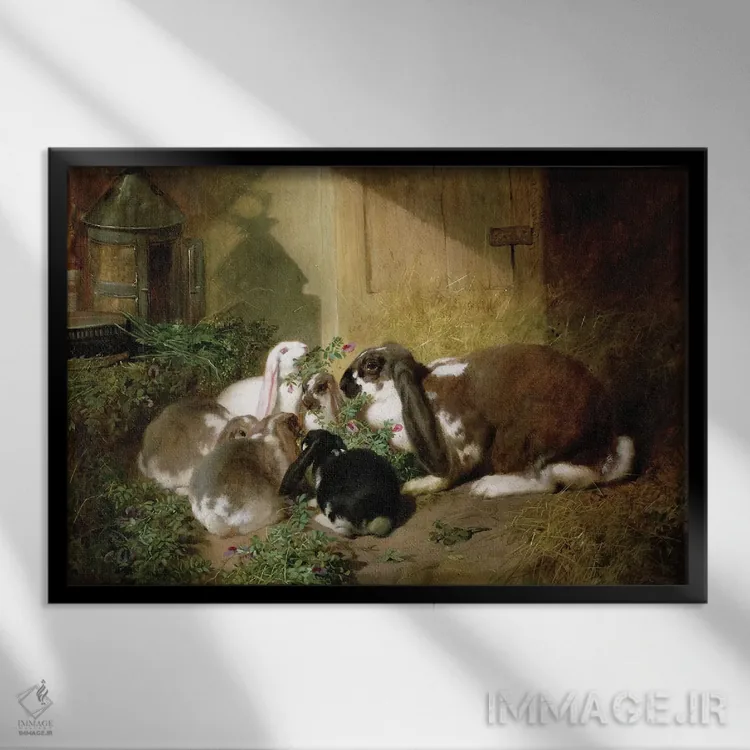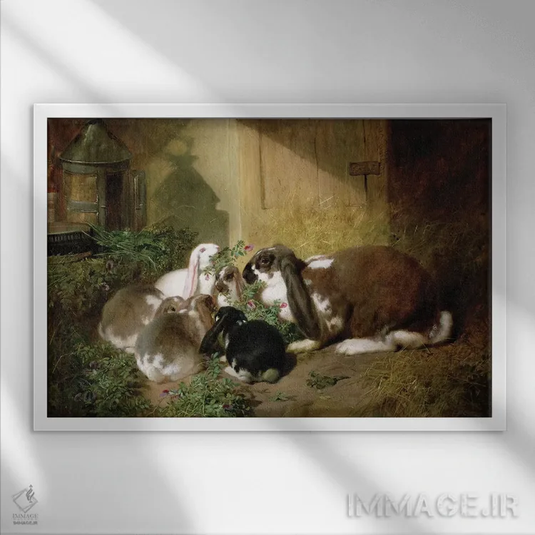 تابلو کلاسیک خرگوش ماده با گوش افتاده و بچه هایش اثر جان فردریک هرینگ سینیور