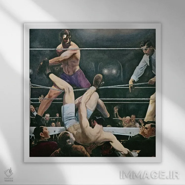 «دمپسی مقابل فیرپو در نیویورک، ۱۹۲۳—۱۹۲۴ (بوکس)» اثرِ «جورج وسلی بلوز (نقاش واقعگرا آمریکایی)» با حالوهوای هنر فاخر کلاسیک و موضوعِ این اثر، برای پذیراییهای رسمی و دکورهای کلاسیک انتخابی شایسته است.
