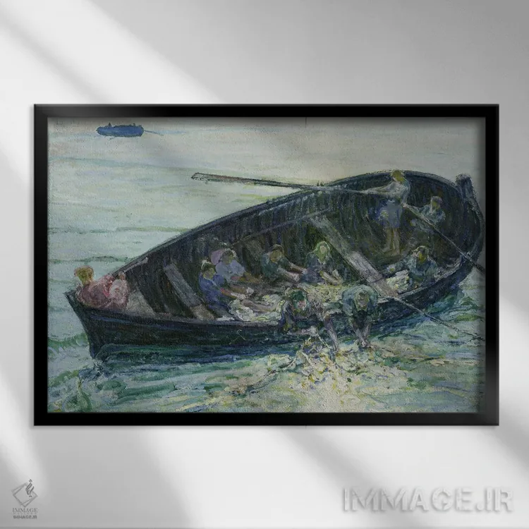 تابلو صید معجزه‌آسای ماهی‌ها، حدود ۱۹۱۳-۱۴ اثر هنری اوسوا تانر - نمای قاب‌دار مشکی