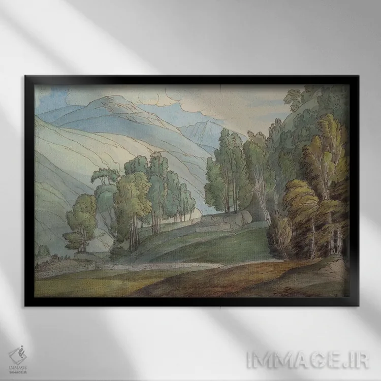 برای دیواری که میخواهید نرمتر دیده شود، «دره سنت جان در کامبرلند، ۱۷۸۶» اثرِ «فرانسیس تاون» در کنار چوب و پارچههای روشن، عالی مینشیند؛ برای هدیه دادن انتخابی خوشسلیقه است. فضا را شلوغ نمیکند؛ فقط لطیفترش میکند.