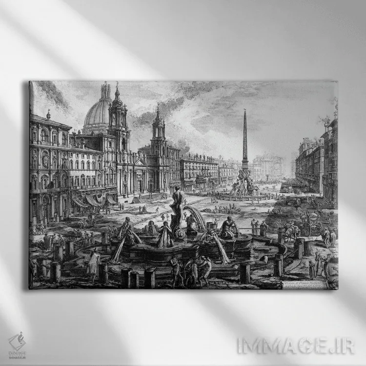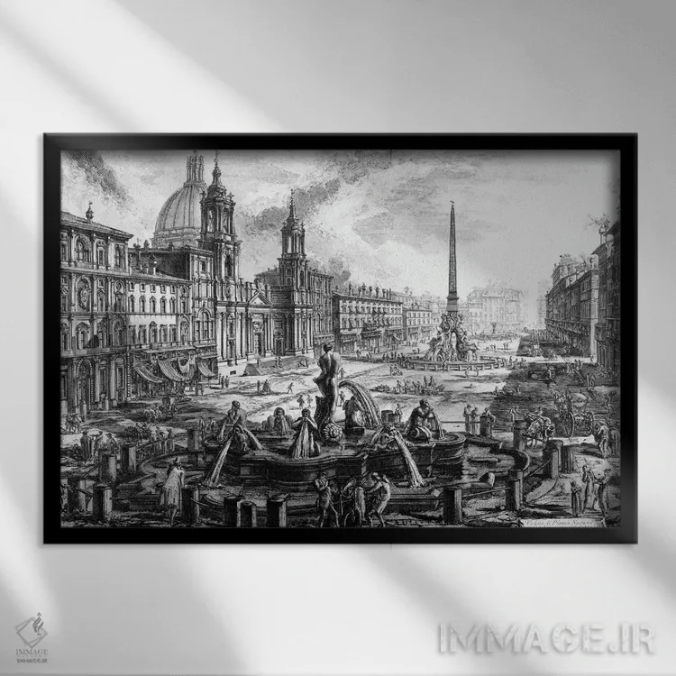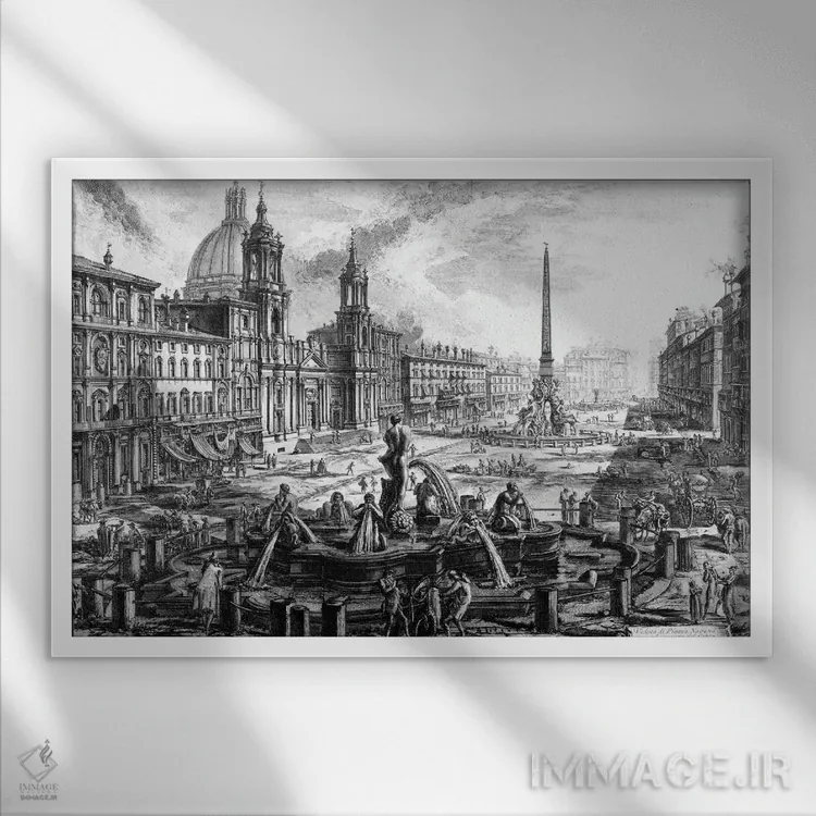 این اثر با عنوان «c.1760، نمای میدان ناوونا بر فراز ویرانههای سیرک آگونالیس (اثر حکاکی از مجموعه مناظر رم)، حدود ۱۷۶۰» اثرِ «جیووانی باتیستا پیرانزی (هنرمند و معمار ایتالیایی)» پرسپکتیو و خطوط را به مرکز توجه تبدیل کند؛ برای اتاق کار انتخابی خوشسلیقه است. فضا را شلوغ نمیکند؛ فقط ساختار میدهد.