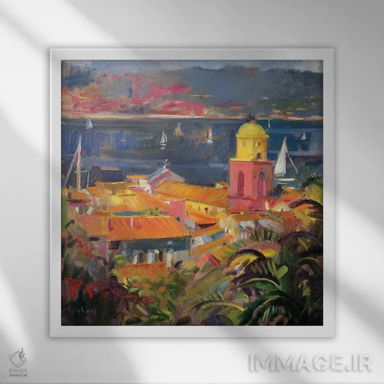 «2002، قایقرانی در سنت تروپه، ۲۰۰۲» اثرِ «پیتر گراهام» با حالوهوای هنر فاخر کلاسیک و موضوعِ این اثر، برای پذیراییهای رسمی و دکورهای کلاسیک انتخابی شایسته است.