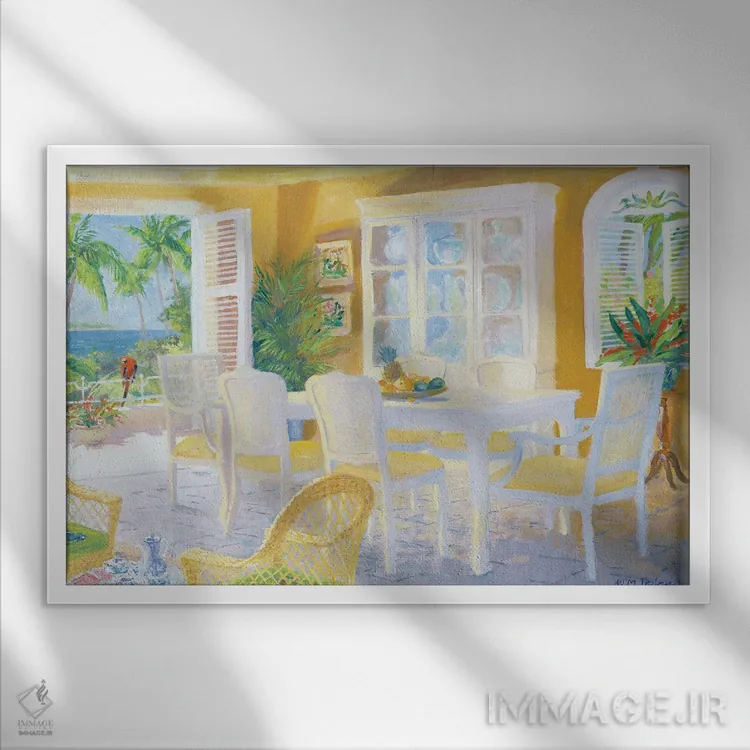 برای دکورهای ساختارمند و مدرن، «قهوه کارائیب» اثرِ «ویلیام ایرلند» پرسپکتیو و خطوط را به مرکز توجه تبدیل کند؛ برای نشیمنهای مینیمال انتخابی خوشسلیقه است. با قاب مشکی مات، جلوهٔ تمیزتری پیدا میکند.