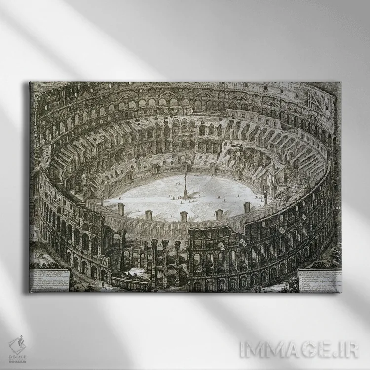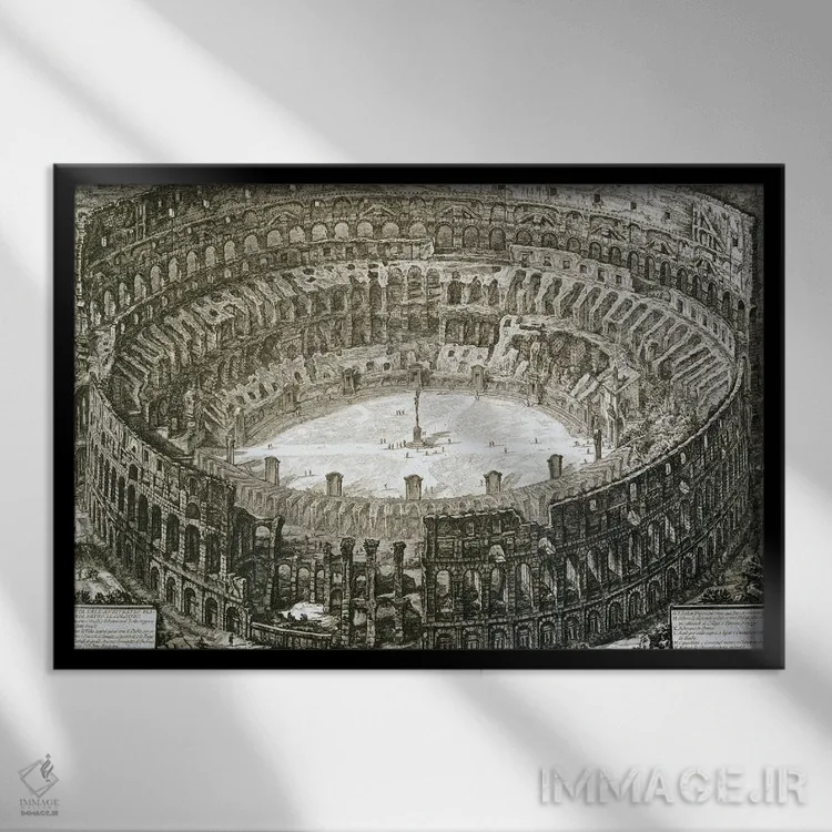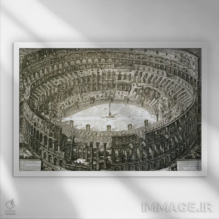 تابلو First Published In 1756, Printed Paris 1800,نمای هوایی کلوسئوم در رم از مجموعه "مناظر رم"، چاپ اول ۱۷۵۶، چاپ پاریس ۱۸۰۰ اثر جیووانی باتیستا پیرا‌نزی (هنرمند و معمار ایتالیایی) - نمای پرسپکتیو محصول
