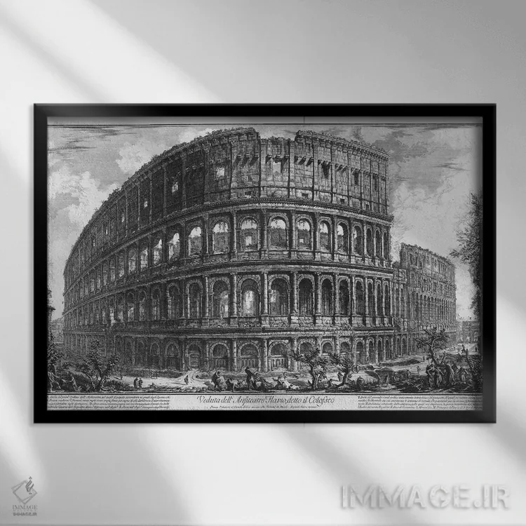 «1761، نمای کلوسئوم رم اثر پیرانزی، ۱۷۶۱» اثرِ «جیووانی باتیستا پیرانزی (هنرمند و معمار ایتالیایی)» یک انتخاب کلاسیک و مرتب است؛ موضوعِ این اثر در آن برای دکورهای لوکس و چوبی عالی مینشیند.