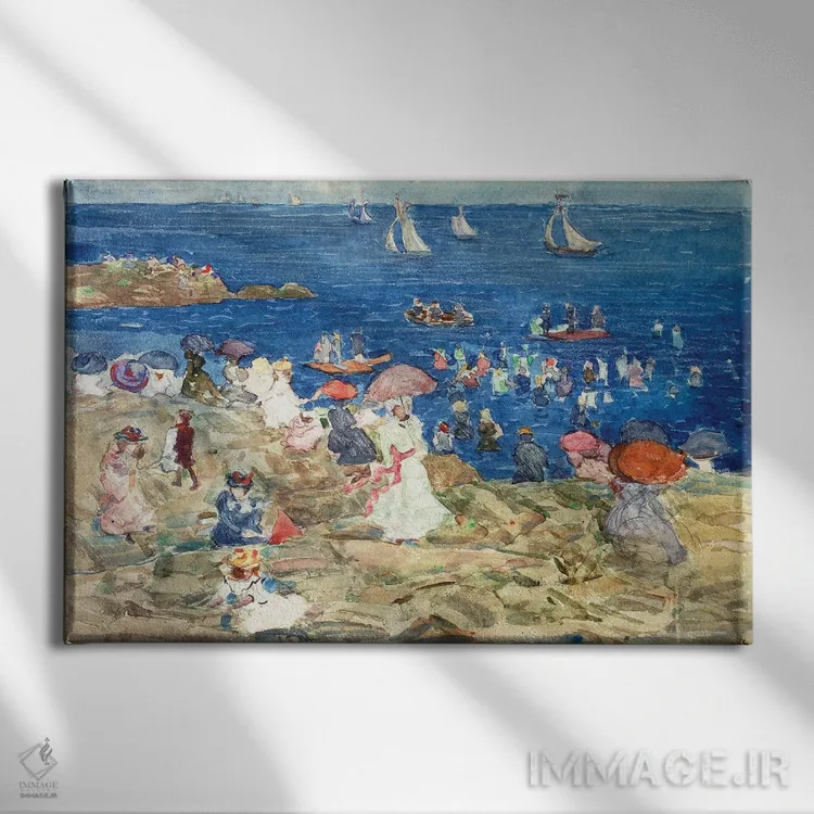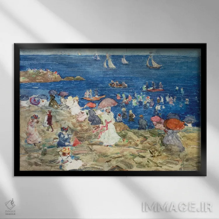«C.1896—97، صحنه ساحلی نیوانگلند، حدود ۱۸۹۶—۹۷» اثرِ «موریس برزیل پرندرگست (نقاش امپرسیونیست آمریکایی)» با حالوهوای این اثر و لحنِ دکور ساحلی، فضا را روشنتر و سبکتر نشان میدهد—مناسبِ نشیمنهای آفتابگیر.