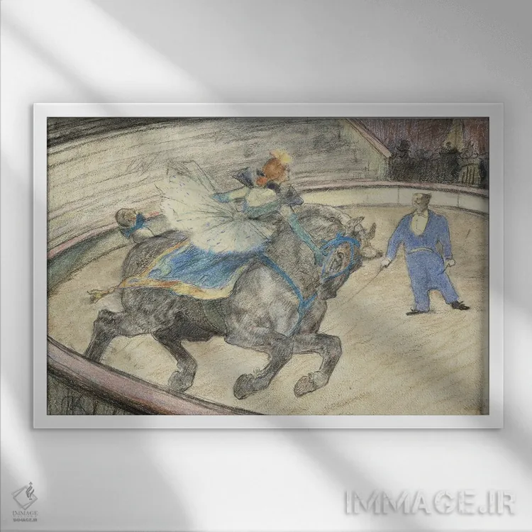 اگر میخواهید دیوار کمی سرزندگیِ محترمانه داشته باشد، «1899، در سیرک: اجرای برنامه در میدان، ۱۸۹۹» اثرِ «آنری دو تولوز—لوترک» مثل یک امضای بامزه اما متین عمل میکند، برای دکورهای مدرن و مینیمال گزینهٔ مناسبیست. حسش صمیمی است، اما کیفیتش جدی و خوشپرداخت.