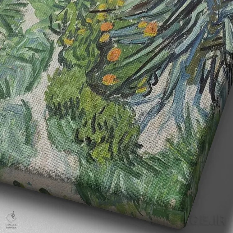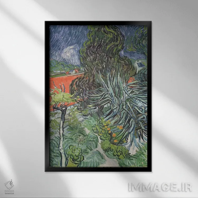 «باغ دکتر گاچه در آور—سور—اواز، ۱۸۹۰ (فرانسه)» اثرِ «ونسان ون گوگ (نقاش مشهور هلندی پستامپرسیونیسم)» میتواند جزئیات نزدیک را چشمنواز نشان بدهد؛ برای نشیمنهای روشن پیشنهاد میشود. با قاب روشن یا چوبی، حس طبیعیتری پیدا میکند.